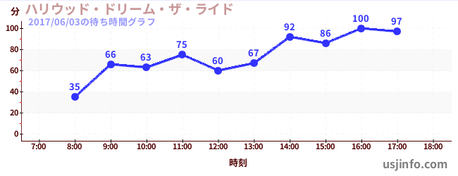 • ハリウッド・ドリーム・ザ・ライド$B$N(B2017年06月03日の待ち時間