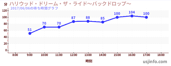 • ハリウッド・ドリーム・ザ・ライド〜バックドロップ〜$B$N(B2017年06月06日の待ち時間