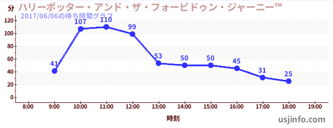 • ハリーポッター・アンド・ザ・フォービドゥン・ジャーニー™$B$N(B2017年06月06日の待ち時間