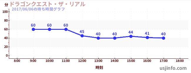 • ハリウッド・ドリーム・ザ・ライド$B$N(B2017年06月06日の待ち時間