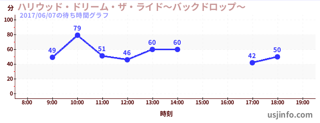 • ハリウッド・ドリーム・ザ・ライド〜バックドロップ〜$B$N(B2017年06月07日の待ち時間