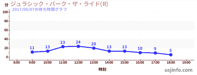 • ジュラシック・パーク・ザ・ライド(R)$B$N(B2017年06月07日の待ち時間