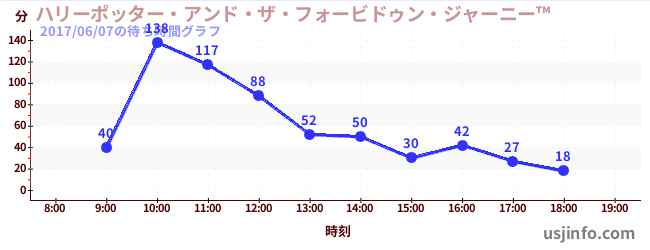 • ハリーポッター・アンド・ザ・フォービドゥン・ジャーニー™$B$N(B2017年06月07日の待ち時間
