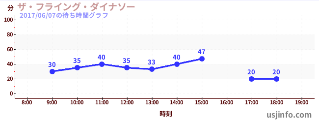 • ザ・フライング・ダイナソー$B$N(B2017年06月07日の待ち時間