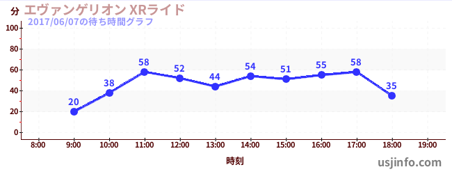 • エヴァンゲリオン XRライド$B$N(B2017年06月07日の待ち時間