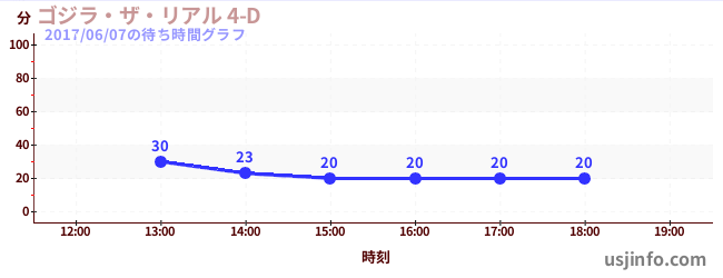• ゴジラ・ザ・リアル 4-D$B$N(B2017年06月07日の待ち時間