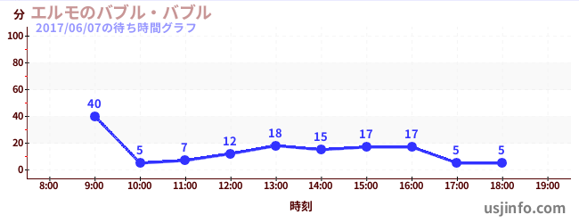 • エルモのバブル・バブル$B$N(B2017年06月07日の待ち時間