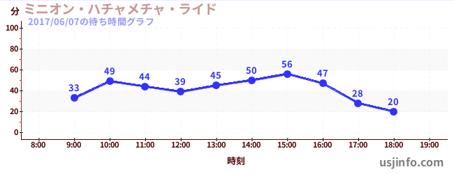 • ミニオン・ハチャメチャ・ライド$B$N(B2017年06月07日の待ち時間