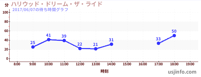 • ハリウッド・ドリーム・ザ・ライド$B$N(B2017年06月07日の待ち時間