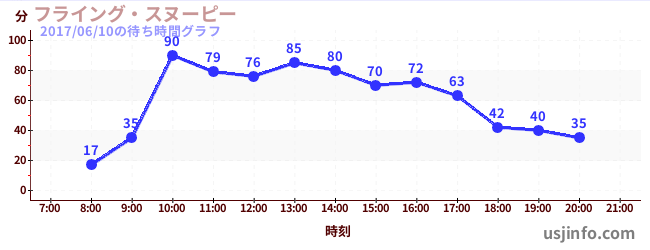• フライング・スヌーピー$B$N(B2017年06月10日の待ち時間