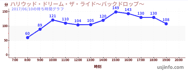 • ハリウッド・ドリーム・ザ・ライド〜バックドロップ〜$B$N(B2017年06月10日の待ち時間