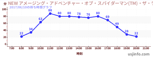 • NEW アメージング・アドベンチャー・オブ・スパイダーマン(TM)・ザ・ライド 4K3D$B$N(B2017年06月10日の待ち時間