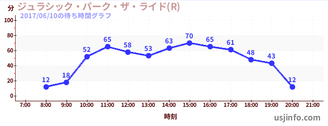 • ジュラシック・パーク・ザ・ライド(R)$B$N(B2017年06月10日の待ち時間