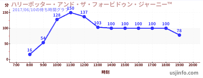 • ハリーポッター・アンド・ザ・フォービドゥン・ジャーニー™$B$N(B2017年06月10日の待ち時間