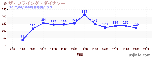 • ザ・フライング・ダイナソー$B$N(B2017年06月10日の待ち時間