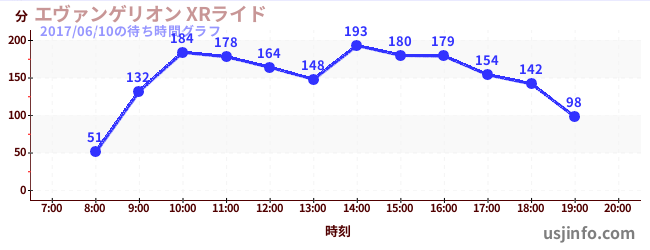 • エヴァンゲリオン XRライド$B$N(B2017年06月10日の待ち時間