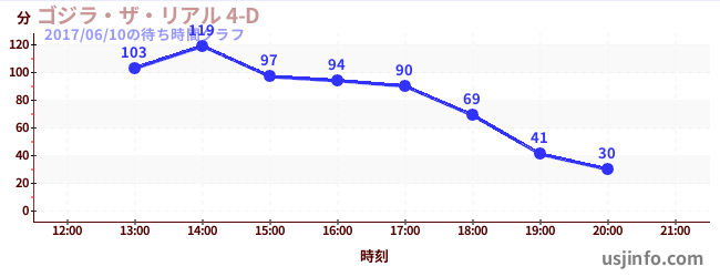 • ゴジラ・ザ・リアル 4-D$B$N(B2017年06月10日の待ち時間