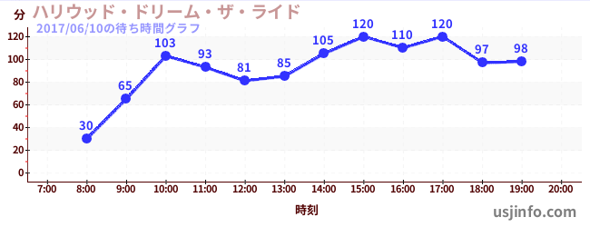 • ハリウッド・ドリーム・ザ・ライド$B$N(B2017年06月10日の待ち時間