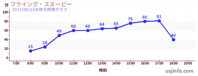 • フライング・スヌーピー$B$N(B2017年06月12日の待ち時間