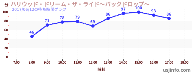 • ハリウッド・ドリーム・ザ・ライド〜バックドロップ〜$B$N(B2017年06月12日の待ち時間