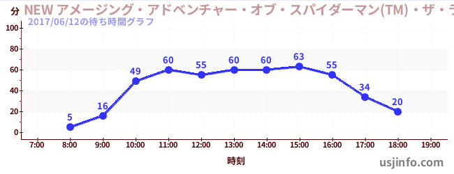 • NEW アメージング・アドベンチャー・オブ・スパイダーマン(TM)・ザ・ライド 4K3D$B$N(B2017年06月12日の待ち時間