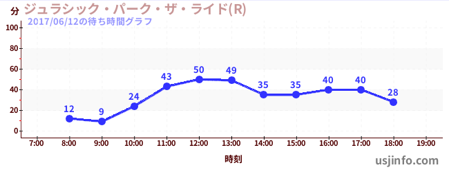 • ジュラシック・パーク・ザ・ライド(R)$B$N(B2017年06月12日の待ち時間