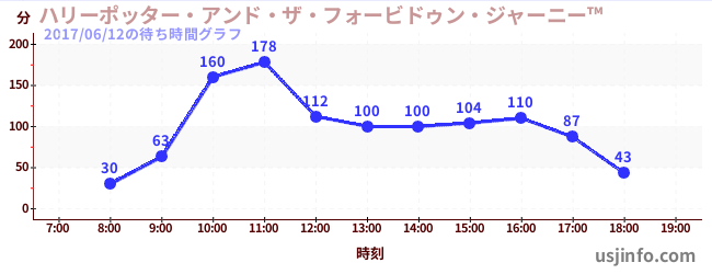 • ハリーポッター・アンド・ザ・フォービドゥン・ジャーニー™$B$N(B2017年06月12日の待ち時間