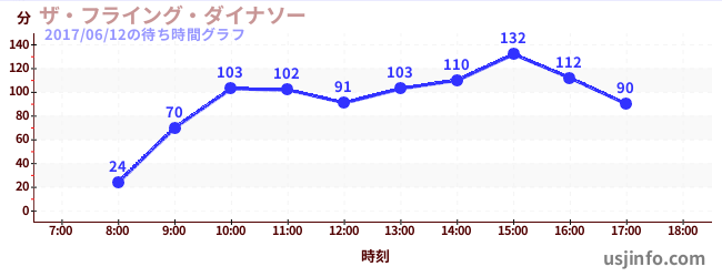 • ザ・フライング・ダイナソー$B$N(B2017年06月12日の待ち時間