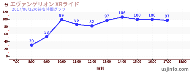 • エヴァンゲリオン XRライド$B$N(B2017年06月12日の待ち時間