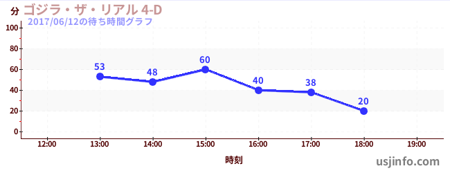 • ゴジラ・ザ・リアル 4-D$B$N(B2017年06月12日の待ち時間
