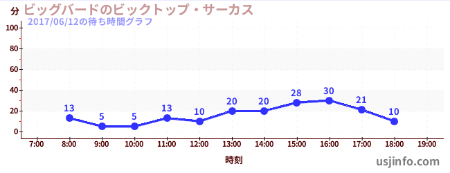 • ビッグバードのビックトップ・サーカス$B$N(B2017年06月12日の待ち時間