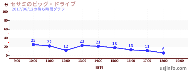 • セサミのビッグ・ドライブ$B$N(B2017年06月12日の待ち時間