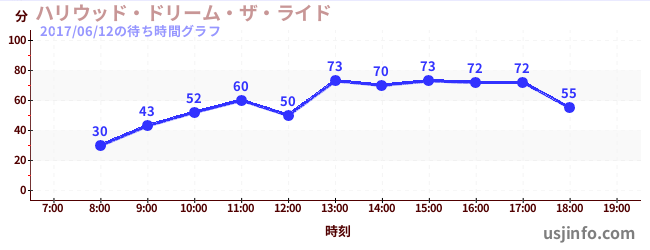 • ハリウッド・ドリーム・ザ・ライド$B$N(B2017年06月12日の待ち時間