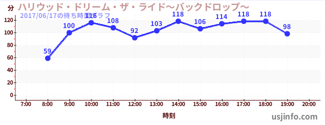 • ハリウッド・ドリーム・ザ・ライド〜バックドロップ〜$B$N(B2017年06月17日の待ち時間
