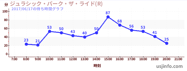 • ジュラシック・パーク・ザ・ライド(R)$B$N(B2017年06月17日の待ち時間