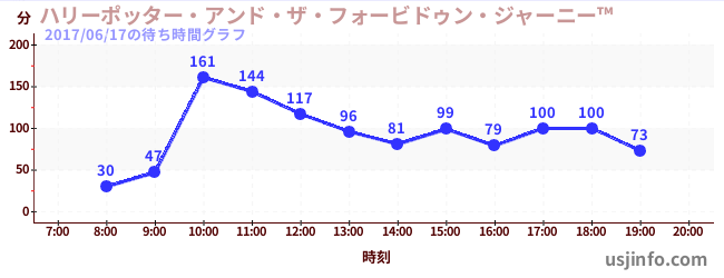 • ハリーポッター・アンド・ザ・フォービドゥン・ジャーニー™$B$N(B2017年06月17日の待ち時間