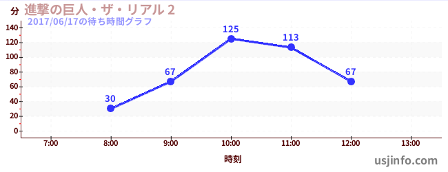 • 進撃の巨人・ザ・リアル 2$B$N(B2017年06月17日の待ち時間