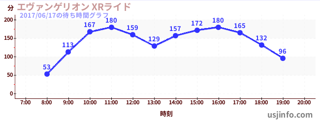 • エヴァンゲリオン XRライド$B$N(B2017年06月17日の待ち時間