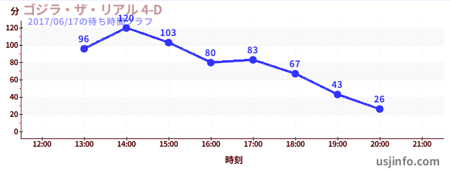 • ゴジラ・ザ・リアル 4-D$B$N(B2017年06月17日の待ち時間
