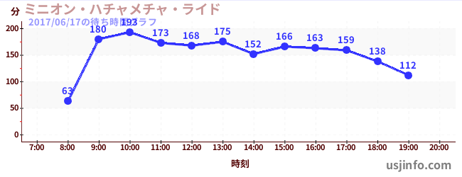 • ミニオン・ハチャメチャ・ライド$B$N(B2017年06月17日の待ち時間