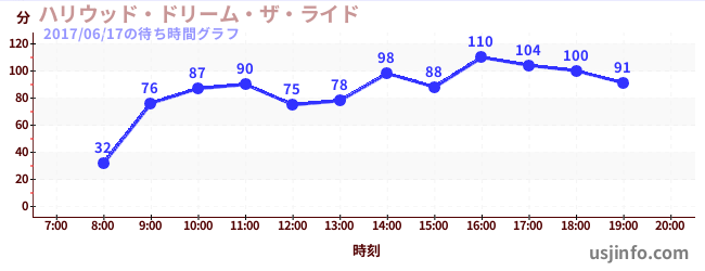 • ハリウッド・ドリーム・ザ・ライド$B$N(B2017年06月17日の待ち時間