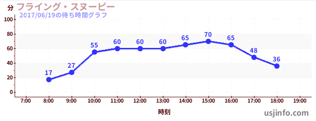 • フライング・スヌーピー$B$N(B2017年06月19日の待ち時間