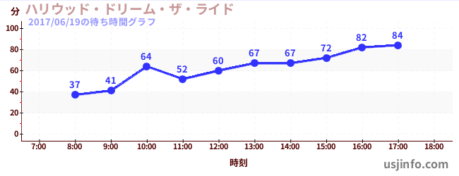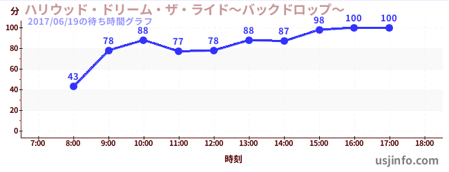 • ハリウッド・ドリーム・ザ・ライド$B$N(B2017年06月19日の待ち時間