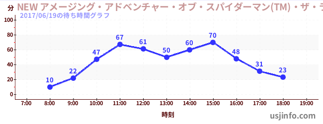 • NEW アメージング・アドベンチャー・オブ・スパイダーマン(TM)・ザ・ライド 4K3D$B$N(B2017年06月19日の待ち時間