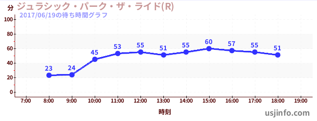 • ジュラシック・パーク・ザ・ライド(R)$B$N(B2017年06月19日の待ち時間