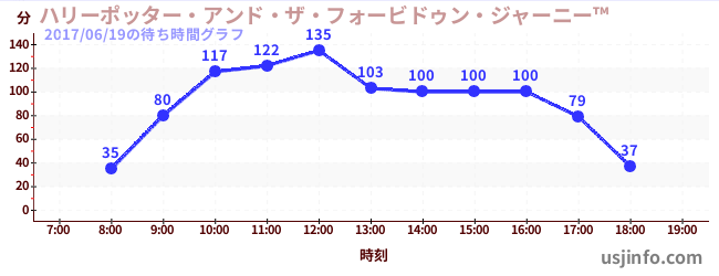 • ハリーポッター・アンド・ザ・フォービドゥン・ジャーニー™$B$N(B2017年06月19日の待ち時間
