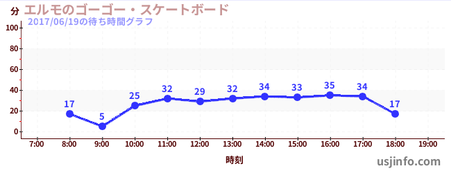 • エルモのゴーゴー・スケートボード$B$N(B2017年06月19日の待ち時間