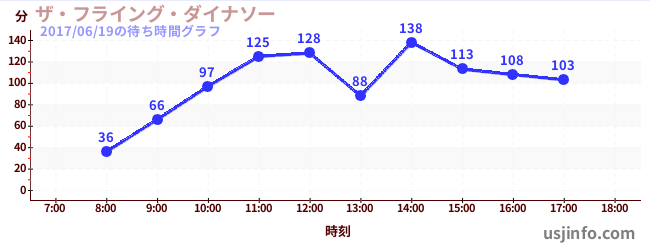 • ザ・フライング・ダイナソー$B$N(B2017年06月19日の待ち時間