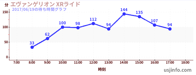 • エヴァンゲリオン XRライド$B$N(B2017年06月19日の待ち時間