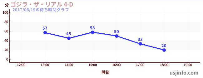 • ゴジラ・ザ・リアル 4-D$B$N(B2017年06月19日の待ち時間